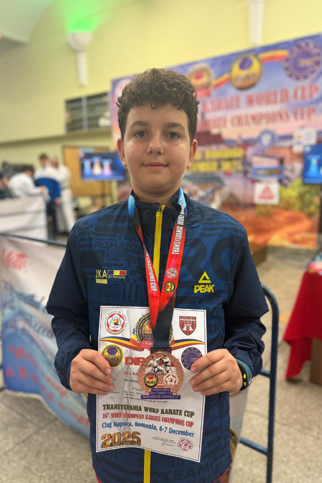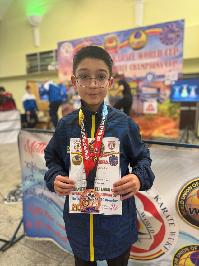La doar 11 ani, Urse Flavius Andrei trăiește deja experiențe pe care mulți sportivi le visează ani întregi. Cu o maturitate rară și o determinare vizibilă încă din primul pas pe tatami, Flavius a demonstrat la Cupa Campionilor Europeni WUKF de la Cluj că aparține lumii marilor competiții. A intrat în sală cu emoția unui copil, dar cu responsabilitatea unui sportiv adevărat, hotărât să arate că munca și disciplina pot transforma orice vis în realitate.