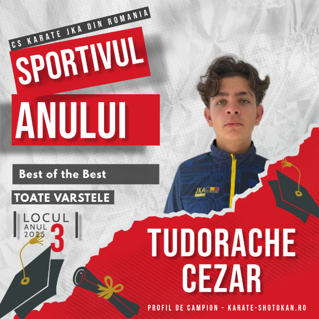 Anul competițional 2025 a confirmat statutul de sportiv de elită al Tudorache Cezar Ștefan, sportiv al CS Karate JKA România, care a fost evidențiat în categoria Best of the Best, ocupând locul III (3) în clasamentul final Sportivul Anului 2025, realizat pe baza punctajelor obținute în Top 100 – Sportivul Anului.