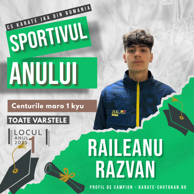 Anul competițional 2025 a reprezentat un moment definitoriu în evoluția sportivă a lui Răileanu Răzvan, sportiv al CS Karate JKA România, desemnat Sportivul Anului 2025 pe Grad – Centura Maro 1 kyu, în urma punctajului acumulat în clasamentul oficial Top 100 – Sportivul Anului.