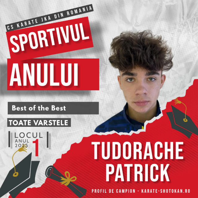 Anul competițional 2025 a confirmat statutul de sportiv de elită al Tudorache Patrick Marian, sportiv al CS Karate JKA România, care a fost evidențiat în categoria Best of the Best, ocupând locul I (1) în clasamentul final Sportivul Anului 2025, realizat pe baza punctajelor obținute în Top 100 – Sportivul Anului.