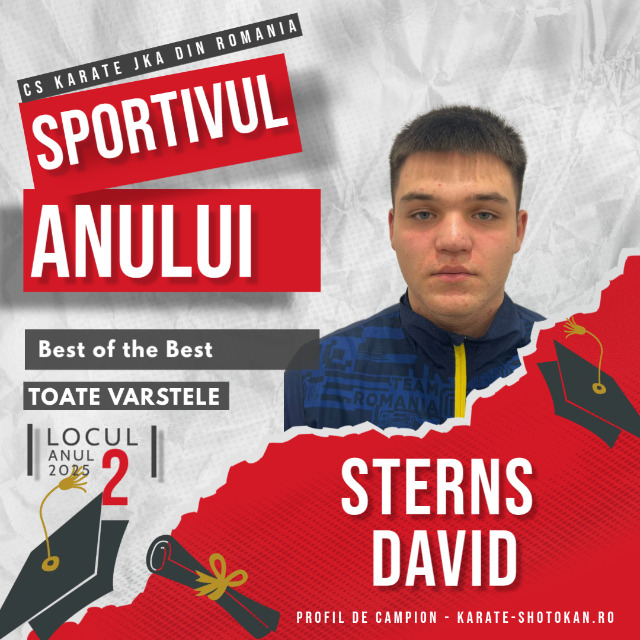 Anul competițional 2025 a fost unul remarcabil pentru Sterns David, sportiv al CS Karate JKA România, desemnat Locul 2 – Best of the Best, în cadrul clasamentului oficial Sportivul Anului 2025. Această distincție reflectă performanța sa constantă și dedicarea demonstrată pe parcursul întregului an, confirmând valoarea muncii și efortului depus la antrenamente și competiții.