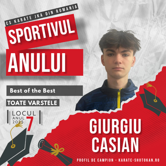 Anul competițional 2025 a confirmat statutul de sportiv de elită al Giurgiu Casian, sportiv al CS Karate JKA România, care a fost evidențiat în categoria Best of the Best, ocupând locul VII (7) în clasamentul final Sportivul Anului 2025, realizat pe baza punctajelor obținute în Top 100 – Sportivul Anului.