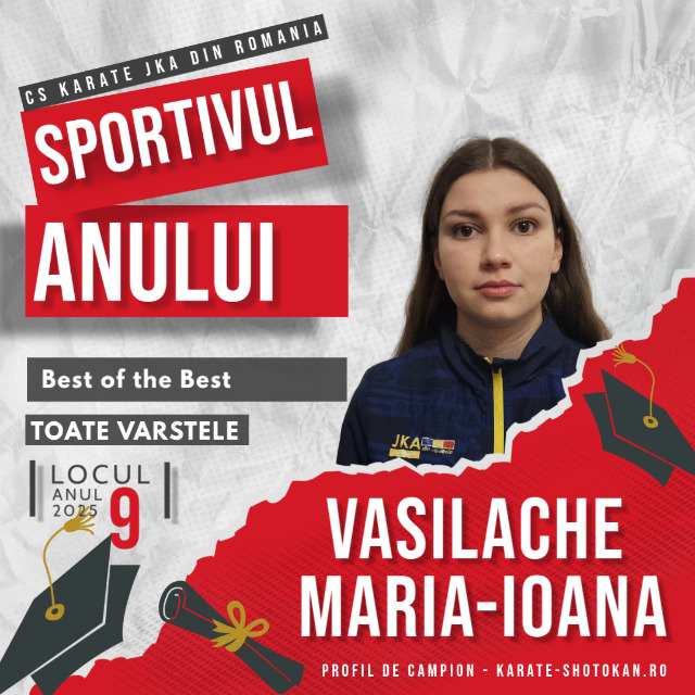 Anul competițional 2025 a reprezentat un test de maturitate sportivă pentru Vasilache Maria Ioana, sportivă a CS Karate JKA România, care a reușit să se claseze pe Locul IX (9) în categoria „Best of the Best”, în clasamentul final Sportivul Anului 2025, realizat pe baza punctajelor din Top 100 – Sportivul Anului.