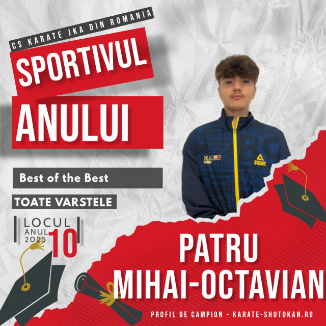 Anul competițional 2025 a marcat un moment important în parcursul sportiv al lui Pătru Mihai Octavian, sportiv al CS Karate JKA România, care a fost evidențiat în categoria „Best of the Best”, ocupând locul (10) în clasamentul final Sportivul Anului 2025, realizat pe baza punctajelor din Top 100 – Sportivul Anului.