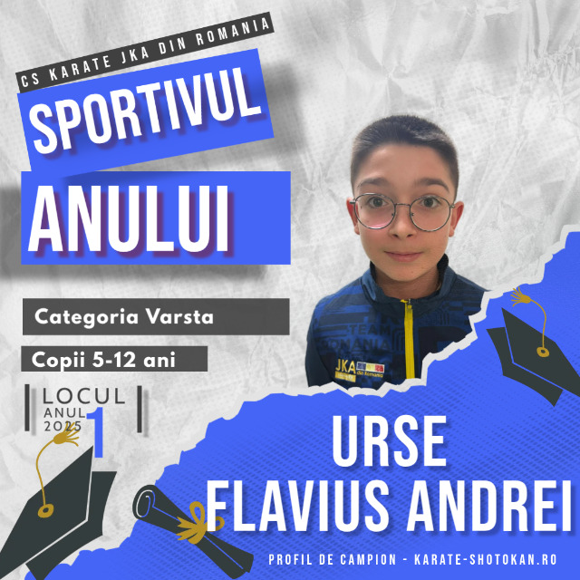 Anul competițional 2025 a reprezentat un moment de referință în parcursul sportiv al lui Urse Flavius Andrei, sportiv al CS Karate JKA România, care a fost desemnat Sportivul Anului 2025 la Categoria Copii (5–12 ani) în cadrul clasamentului oficial Sportivul Anului, realizat pe baza punctajelor din Top 100 – Sportivul Anului 2025.